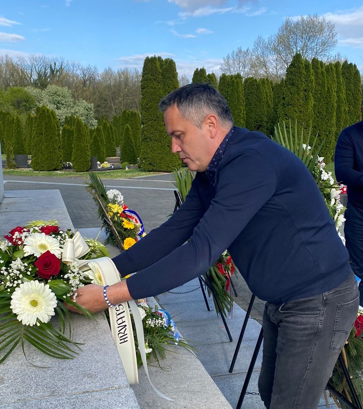 Pored nogometnog kluba, Kustić je s Vrančićem, hrvatskim braniteljem, obišao i Memorijalno groblje žrtvama iz Domovinskog rata, gdje je položio vijenac i zapalio svijeće.