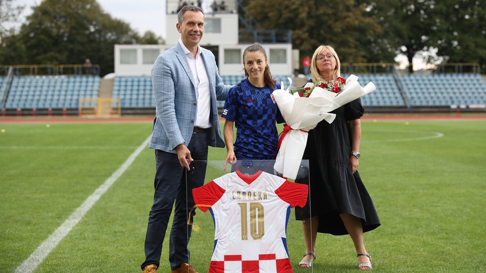 Uoči početka utakmice, u središtu pažnje bila je kapetanica Iva Lažeta, rekorderka s 95 nastupa za hrvatsku reprezentaciju, koja je povodom svog skorašnjeg oproštaja od aktivnog igranja nogometa primila prigodne darove iz ruku izvršnog direktora HNS-a Tomislava Svetine i team managerice A-reprezentacije Ive Olivari.