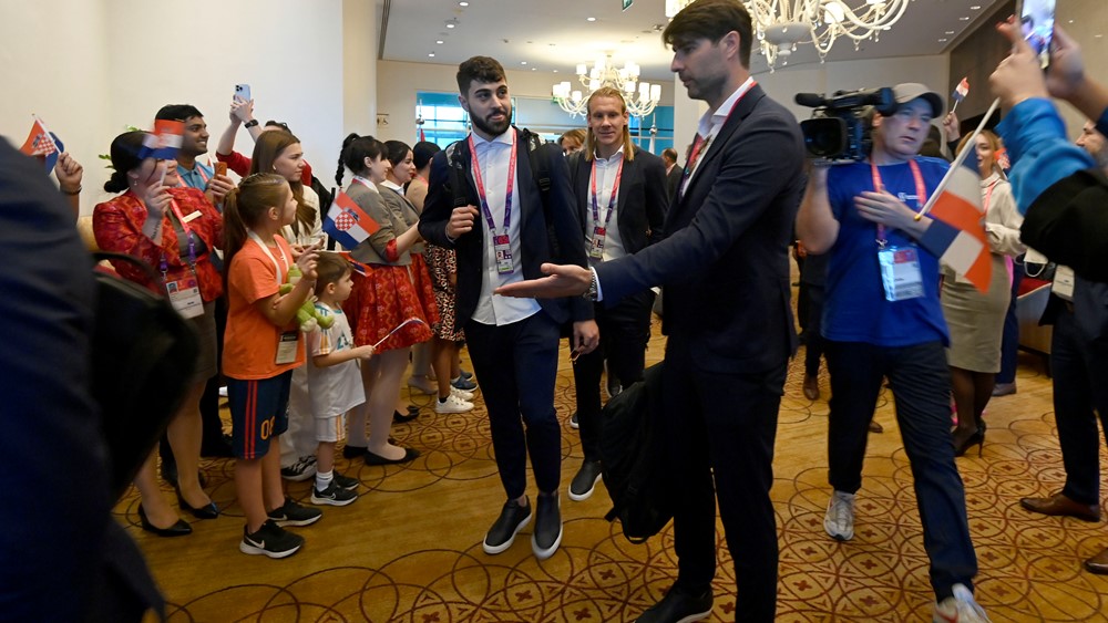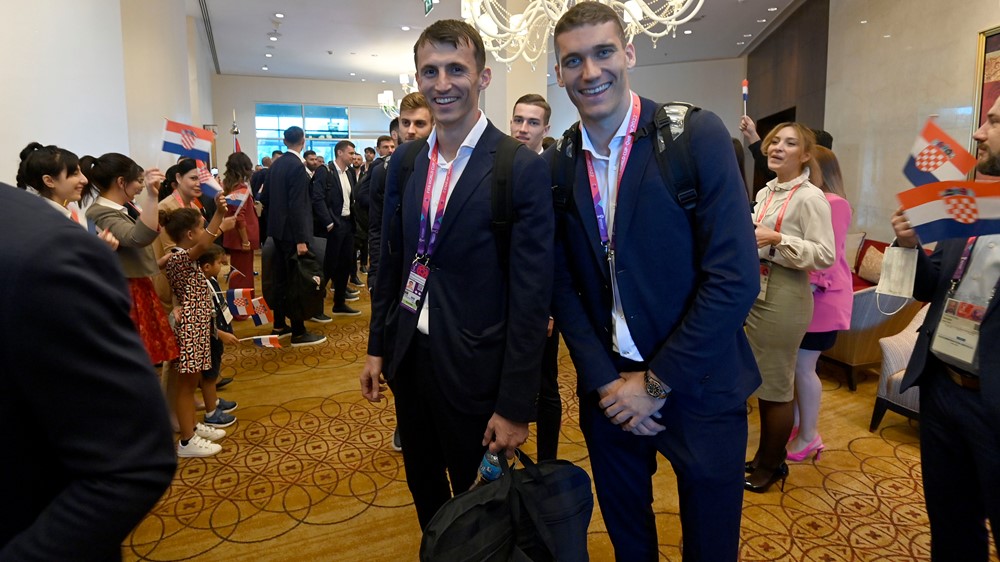 U njihovom baznom hotelu Hilton Doha priređena im je srdačna dobrodošlica gostoljubivih domaćina, koji su pjesmom i hrvatskim zastavicama poželjeli Hrvatskoj puno uspjeha na svjetskoj smotri.