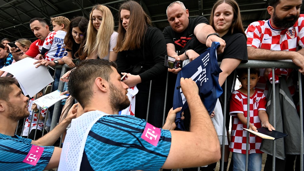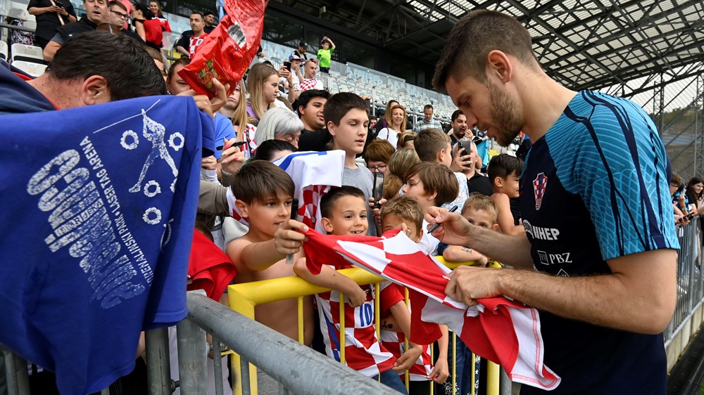Vatrene je s tribina rujevičkog stadiona bodrio velik broj razdraganih malih navijača koji su ih zdušno bodrili, upijajući svaki potez svojih miljenika na travnjaku. Za nagradu su na kraju treninga dobili druženje s reprezentativcima koji su strpljivo uslišili želje riječkih dječaka i djevojčica rado pozirajući pred zaslonima njihovih mobitela i potpisujući autograme iako je trening već odavno bio gotov.