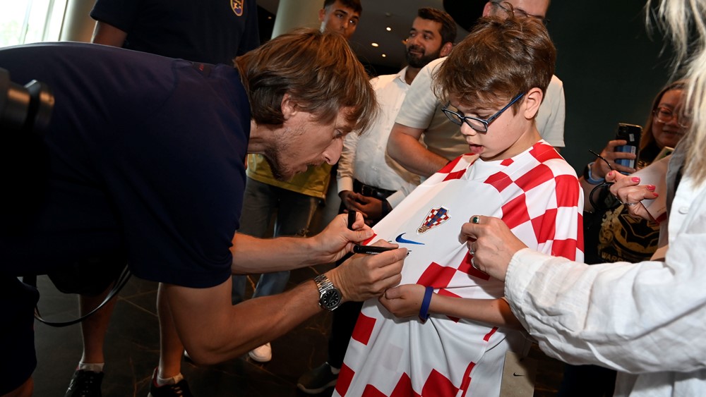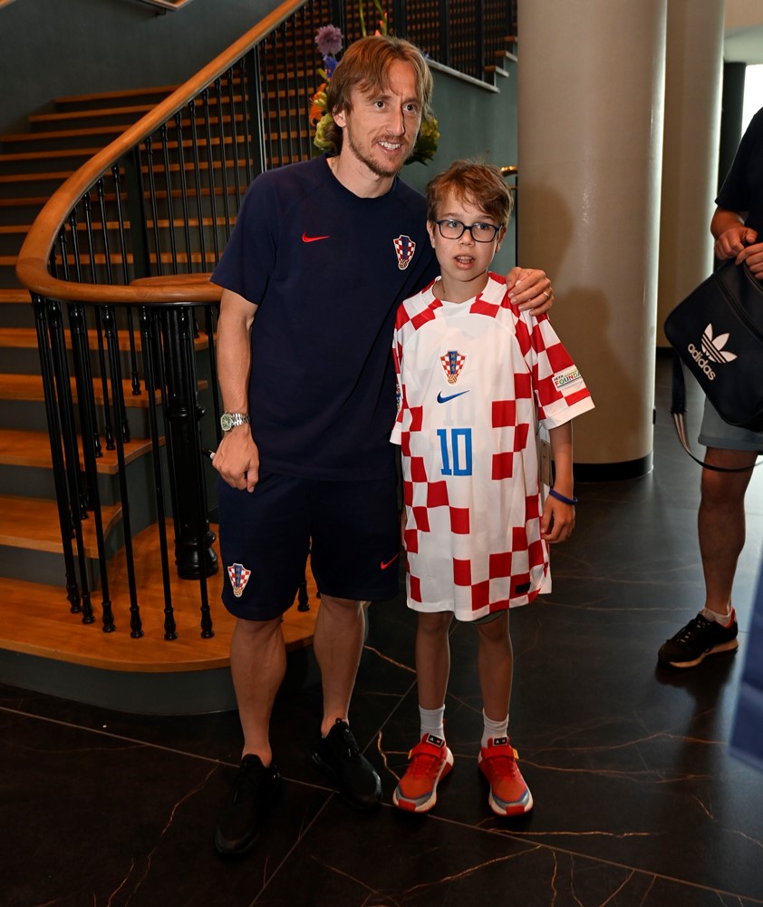 Susret Tina i Luke Modrića poduprla je Zaklada FC Robinstijn koja ostvaruje dječje nogometne želje, a zanimljivo je da je kapetan Vatrenih još 2019. godine snimio video-poruku podrške za Tina, koji je u hotel stigao u pratnji mame Irine, tate Lovre i brata Frana.