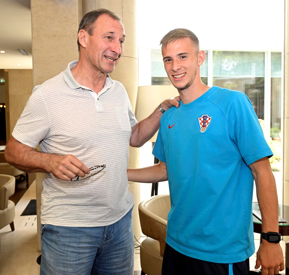 Hrvatska reprezentacija do 21 godine starosti u subotu navečer u Bukureštu igra protiv Španjolske, u svom drugom dvoboju na europskoj smotri u Rumunjskoj i Gruziji, a uoči utakmice posjetila ju je i delegacija Hrvatskog nogometnog saveza.