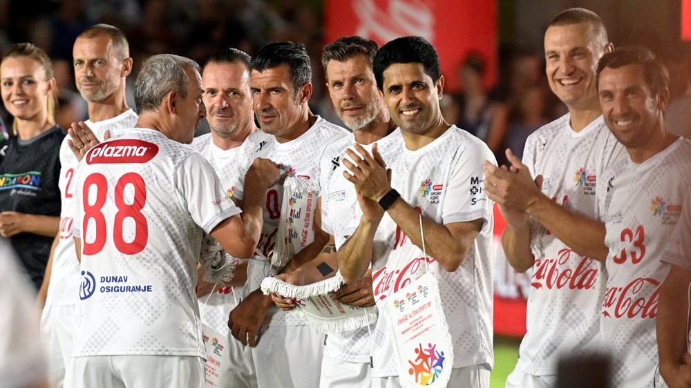 Zaigrali su i bivši kapetani Vatrenih Zvonimir Boban i Darijo Srna, bivši hrvatski reprezentativci Aljoša Asanović i Mario Stanić te proslavljena imena svjetskog nogometa poput Luisa Figa, Predraga Mijatovića, Nemanje Vidića i Christiana Karembeua, uz predsjednika Uefe Aleksandera Čeferina i predsjednika PSG-a Nassera Al-Khelaifija.