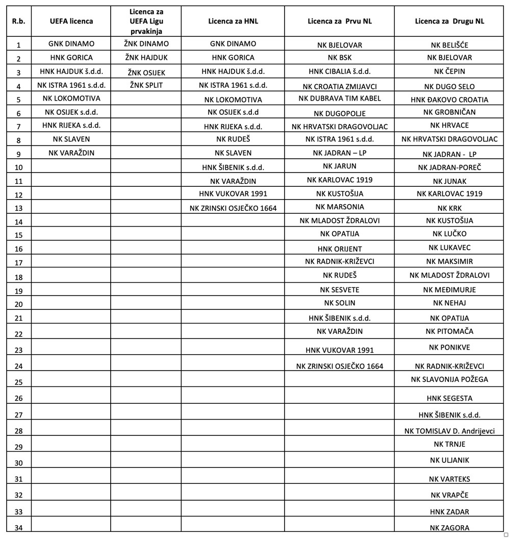 Licenciranje klubova za natjecateljsku 2024./25. godinu
