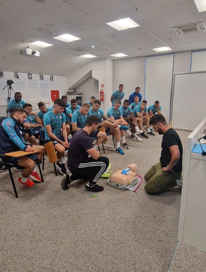 Igrači i stožeri Dinama i Rijeke, kao finalisti SuperSport Hrvatskog nogometnog kupa, prošli su radionice iz pružanja prve pomoći kod iznenadnog zastoja srca, a pružilo ju je vodstvo medicinskih stručnjaka hrvatskog društva za reanimatologiju i HNS-a predvođeno liječnikom nogometne reprezentacije Tomislavom Vlahovićem.