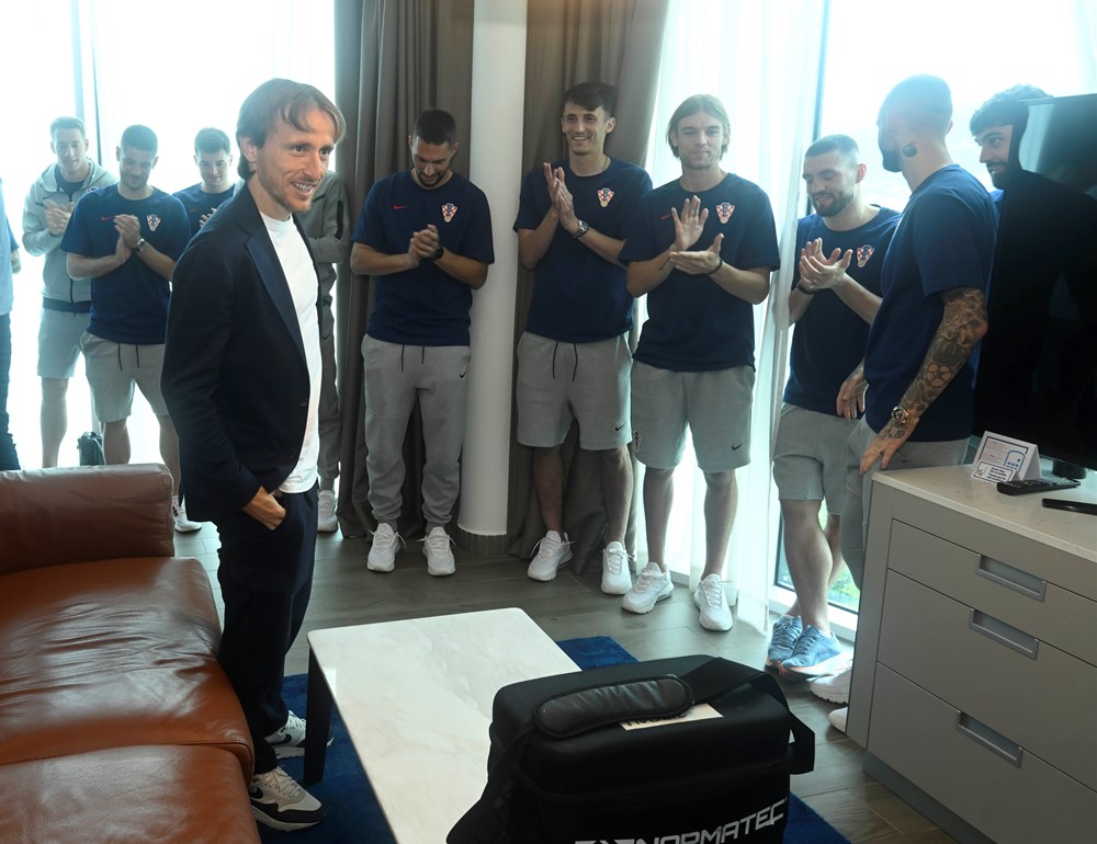 Luka nije ni slutio što ga čeka kad je iz kuverte uzimao karticu i ulazio u sobu... A onda... Iznenađenje! Suigrači na okupu, pljesak dobrodošlice i himna Lige prvaka s velikog zvučnika. Ugodno iznenađenje na početku još jedne Lukine misije u ulozi kapetana Vatrenih. Zaslužio je. I kao najtrofejniji igrač u povijesti velikog Real Madrida, i kao predvodnik najveće generacije u povijesti hrvatskog nogometa.