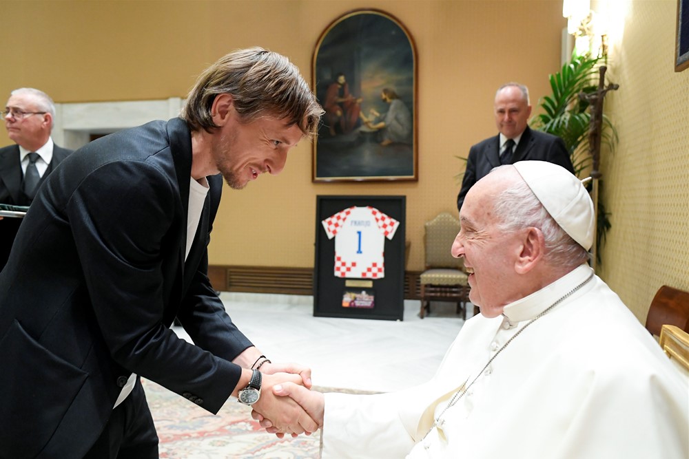 Predsjednik Kustić darovao je Papi uokvireni dres hrvatske nogometne reprezentacije s brojem jedan i imenom Franjo na leđima te repliku prve lopte s kojom se počeo igrati nogomet u Hrvatskoj.